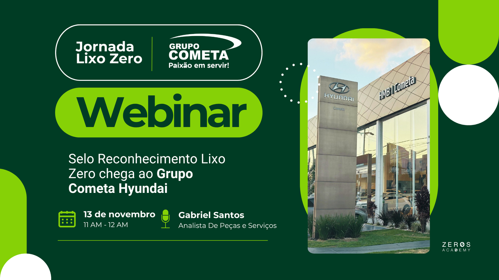 O Grupo Cometa avançou de forma significativa na consolidação de sua agenda ESG e na implementação de práticas robustas de gestão de resíduos. Reconhecida como referência no setor automotivo da Região Norte, a empresa compartilhou sua trajetória durante o Webinar Lixo Zero, realizado em 13 de novembro. Participaram Gabriel Santos, Analista de Peças e Serviços do Grupo Cometa, e Luiz Henrique, CEO da Ouro Verde Meio Ambiente, parceiro estratégico na implementação do Selo Reconhecimento Lixo Zero.